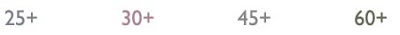 Para cada faixa etária - 25+, 30+, 45+ e 60+ - há a possibilidade de escolher o produto que melhor atende às suas necessidades de tratamento por meio das seguintes opções: primeiros cuidados, poucos sinais, sinais e muitos sinais.